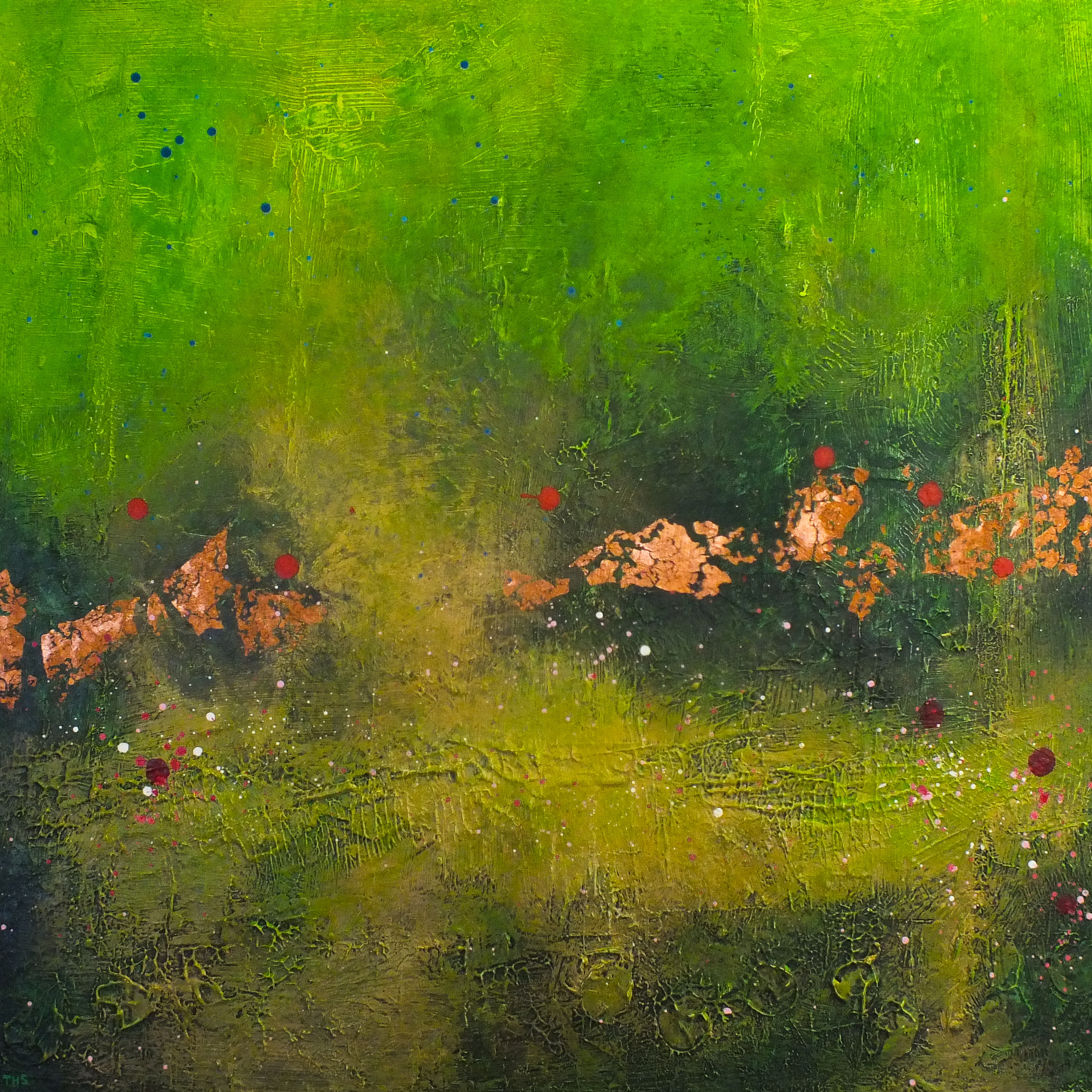 Gesso, metal leaf and acrylic on canvas